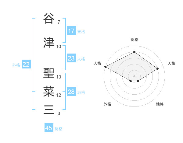 谷津 聖菜三さんを姓名の画数から五運を鑑定