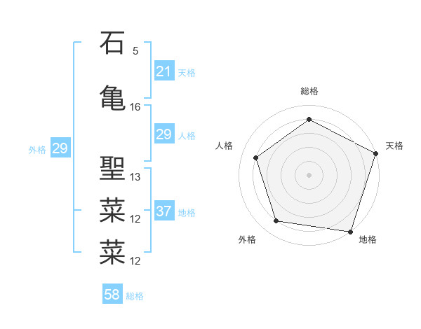 石亀 聖菜菜さんを姓名の画数から五運を鑑定