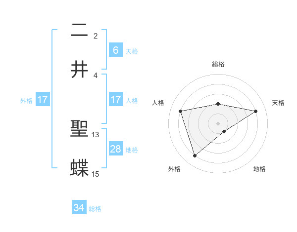 二井 聖蝶さんを姓名の画数から五運を鑑定