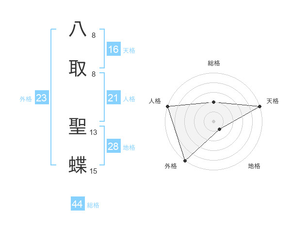 八取 聖蝶さんを姓名の画数から五運を鑑定