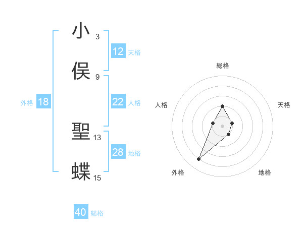 小俣 聖蝶さんの天格は12画の1点!