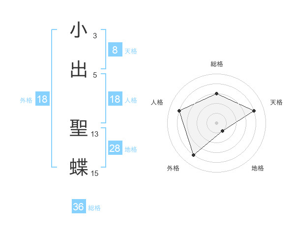 小出 聖蝶さんの外格は18画の4点!