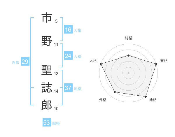 市野 聖誌郎さんを姓名の画数から五運を鑑定