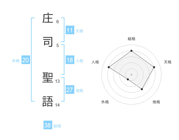 庄司 聖語さんの外格は20画の1点!