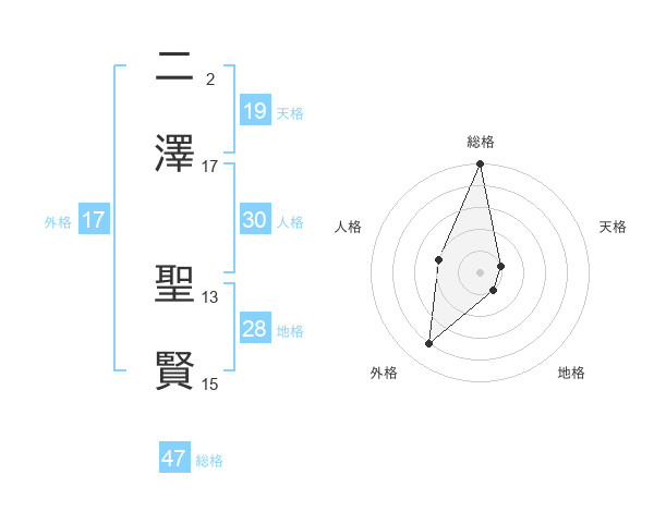 二澤 聖賢さんを姓名の画数から五運を鑑定