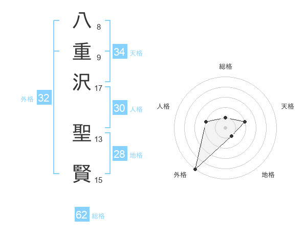 八重沢 聖賢さんの外格は32画の5点!