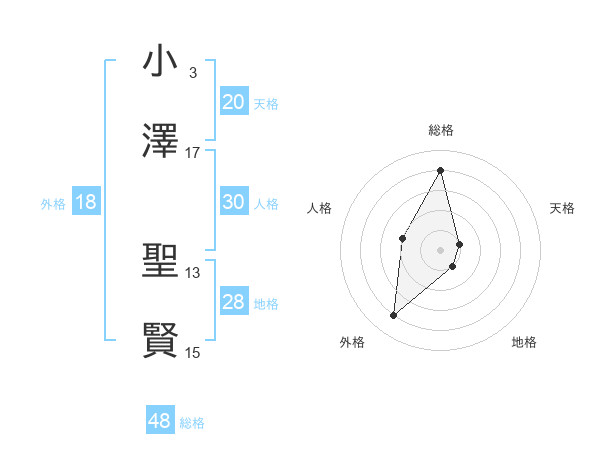 小澤 聖賢さんを姓名の画数から五運を鑑定