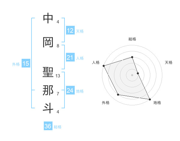 中岡 聖那斗さんを姓名の画数から五運を鑑定