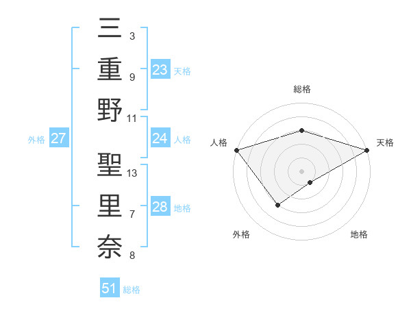 三重野 聖里奈さんを姓名の画数から五運を鑑定