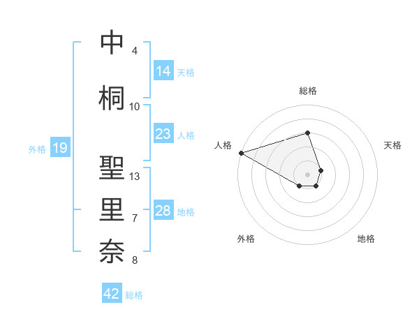 中桐 聖里奈さんの天格は14画の1点!