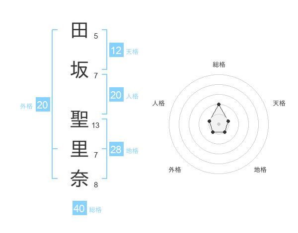 田坂 聖里奈さんを姓名の画数から五運を鑑定