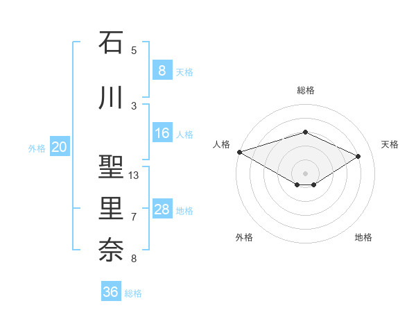 石川 聖里奈さんを姓名の画数から五運を鑑定