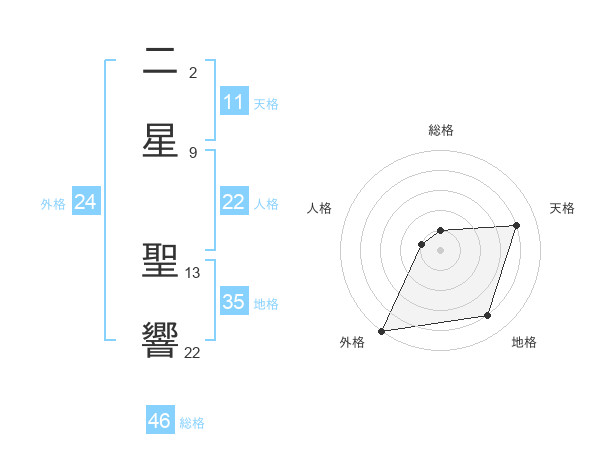 二星 聖響さんの総格は46画の1点!