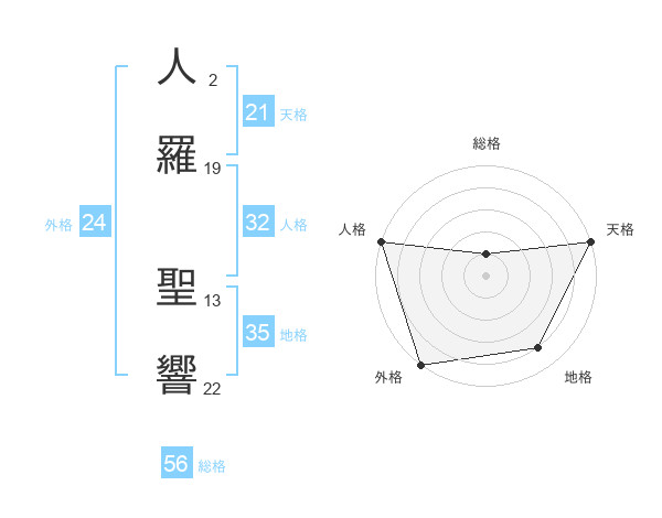 人羅 聖響さんの総格は56画の1点!