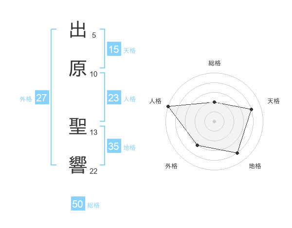 出原 聖響さんの総格は50画の2点!