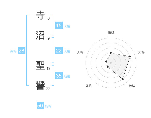 寺沼 聖響さんの総格は50画の2点!