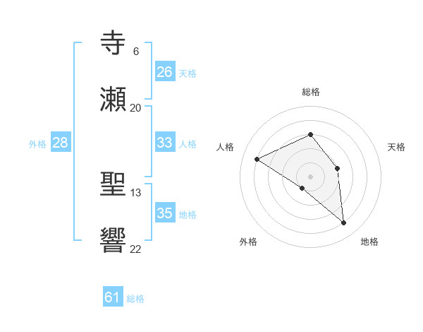 寺瀬 聖響さんの総格は61画の3点!