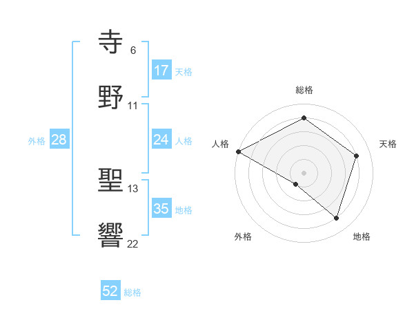 寺野 聖響さんの総格は52画の4点!