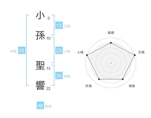 小孫 聖響さんの天格は13画の5点!