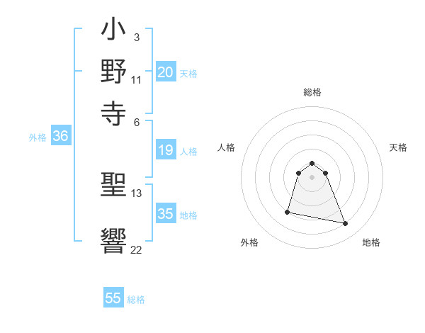 小野寺 聖響さんの天格は20画の1点!