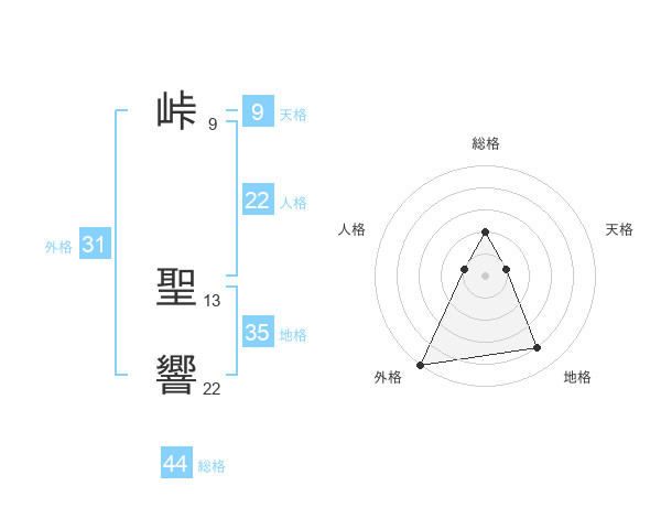 峠 聖響さんの総格は44画の2点!