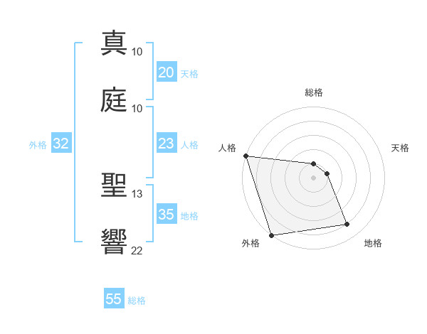 真庭 聖響さんの総格は55画の1点!