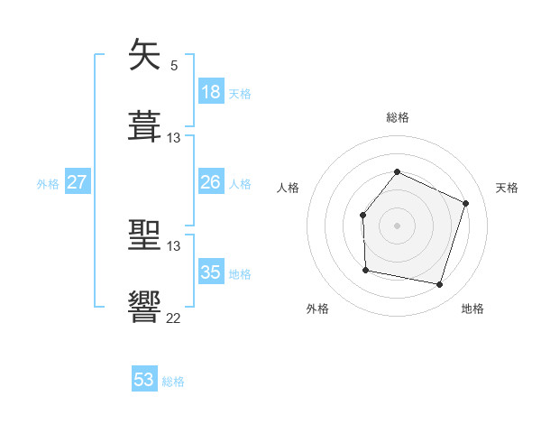 矢葺 聖響さんの総格は53画の3点!