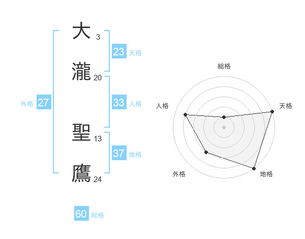 大瀧 聖鷹さんの総格は60画の1点!