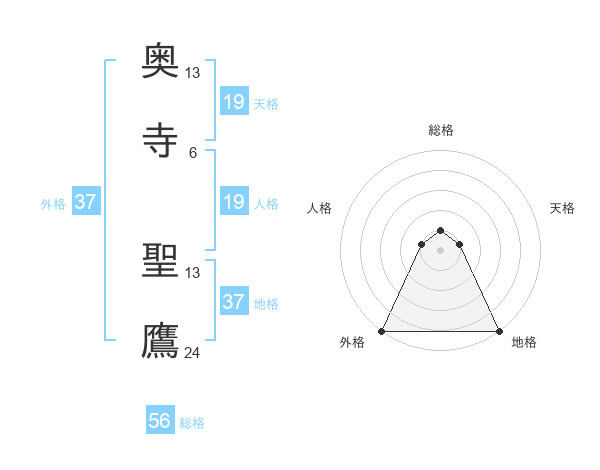 奥寺 聖鷹さんの外格は37画の5点!