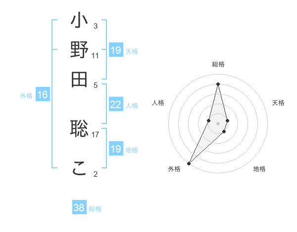 小野田 聡こさんを姓名の画数から五運を鑑定