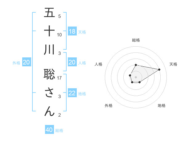 五十川 聡さんさんを姓名の画数から五運を鑑定