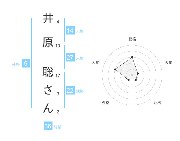 井原 聡さんさんを姓名の画数から五運を鑑定