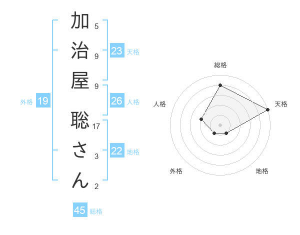 加治屋 聡さんさんの天格は23画の5点!