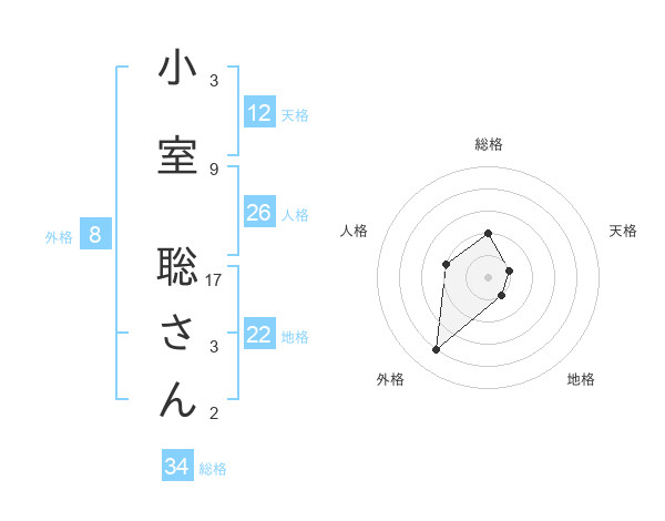 小室 聡さんさんを姓名の画数から五運を鑑定