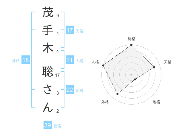 茂手木 聡さんさんの総格は39画の5点