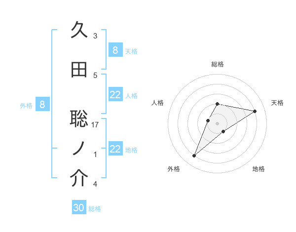 久田 聡ノ介さんを姓名の画数から五運を鑑定