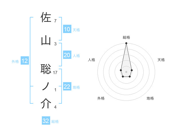 佐山 聡ノ介さんの総格は32画の5点!