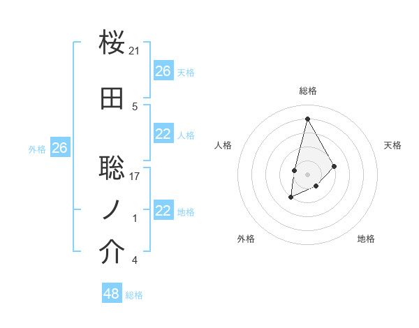 桜田 聡ノ介さんを姓名の画数から五運を鑑定