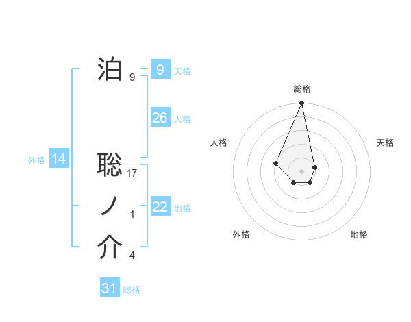 泊 聡ノ介さんを姓名の画数から五運を鑑定