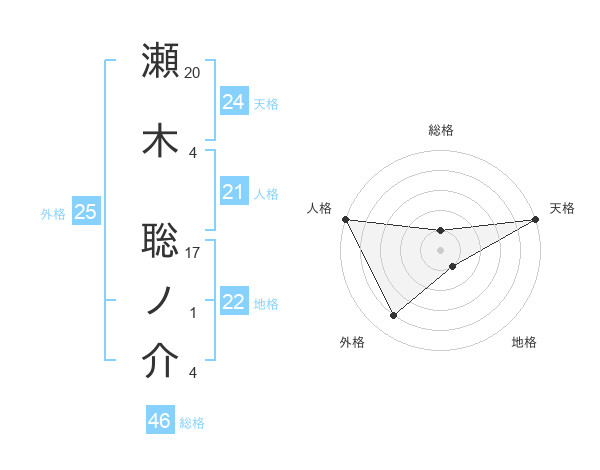 瀬木 聡ノ介さんを姓名の画数から五運を鑑定