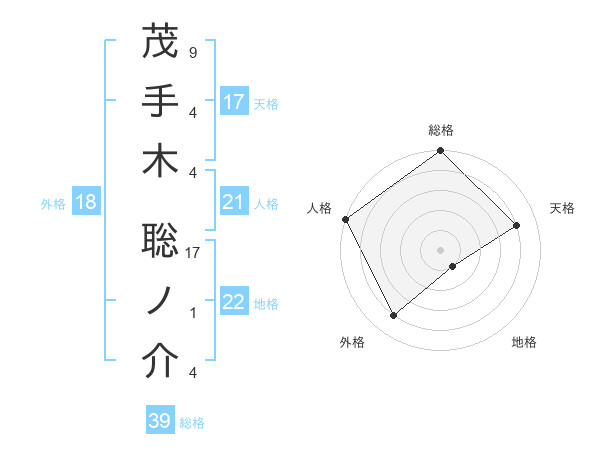 茂手木 聡ノ介さんを姓名の画数から五運を鑑定