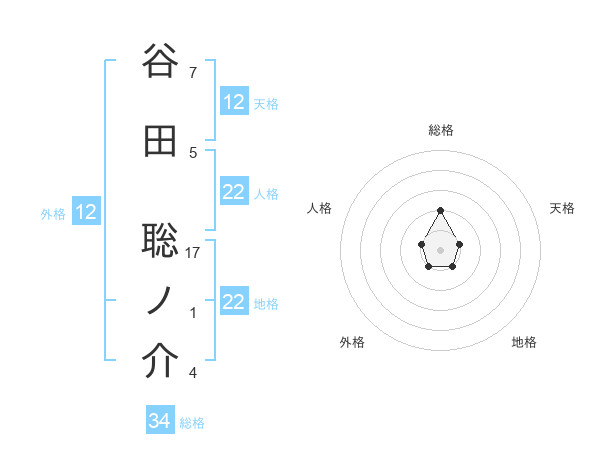 谷田 聡ノ介さんを姓名の画数から五運を鑑定