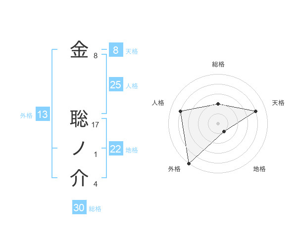 金 聡ノ介さんを姓名の画数から五運を鑑定