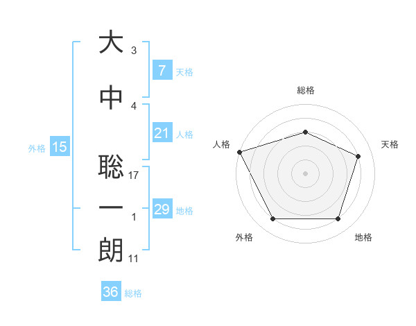 大中 聡一朗さんの天格は7画の4点!