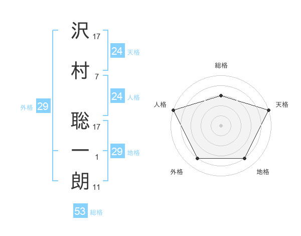 沢村 聡一朗さんを姓名の画数から五運を鑑定