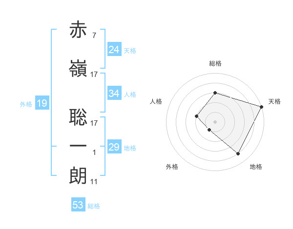 赤嶺 聡一朗さんの総格は53画の3点!
