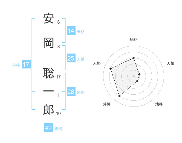 安岡 聡一郎さんを姓名の画数から五運を鑑定