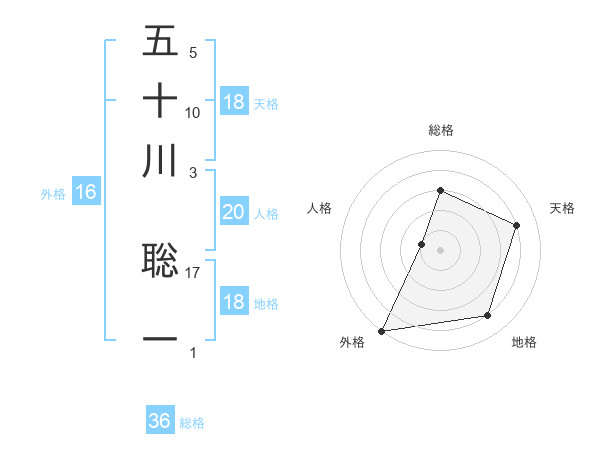 五十川 聡一さんを姓名の画数から五運を鑑定