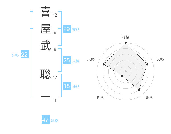 喜屋武 聡一さんの総格は47画の5点!
