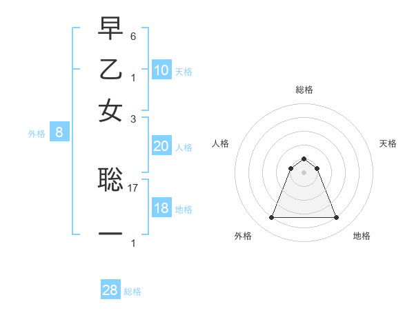 早乙女 聡一さんを姓名の画数から五運を鑑定